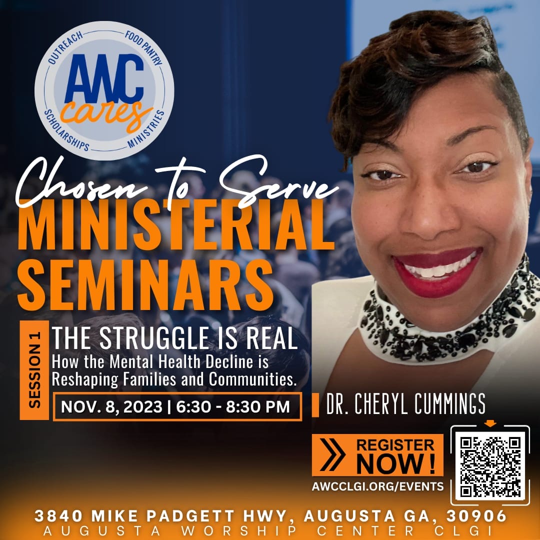 Dr. Cummings will share insights regarding the challenges families and the community faces with the rise in documented and undocumented mental health cases. We will explore how to identify, prevent, and cope with these issues. This seminar will better inform our ministerial staff and missionaries as we encounter these challenges in our ministry. All are welcome to attend and bring a friend.